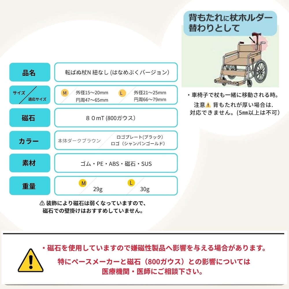 転ばぬ杖 杖ホルダー はなめぶく 限定カラー Nノーマル(紐なし) 【Lサイズ】